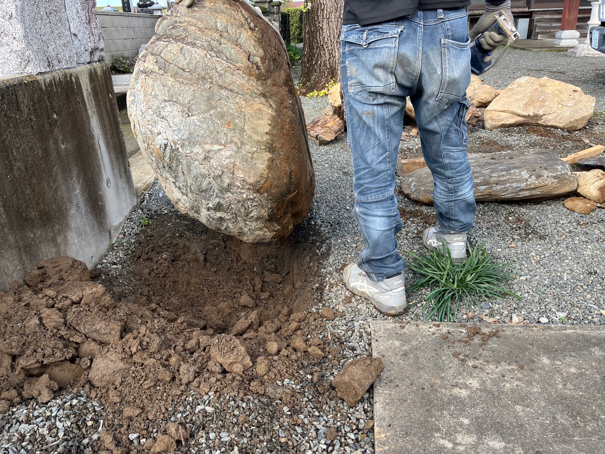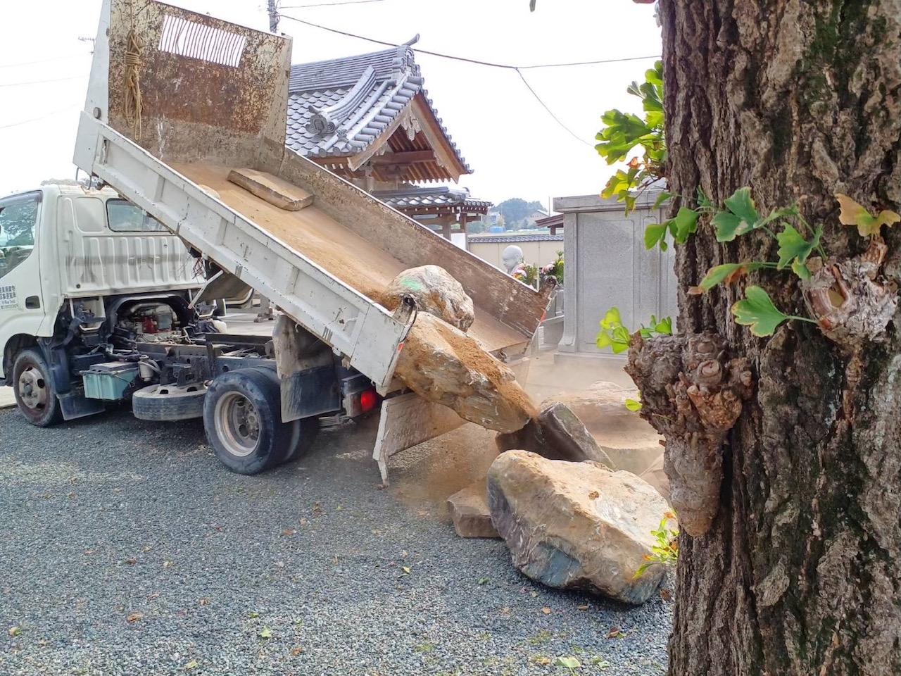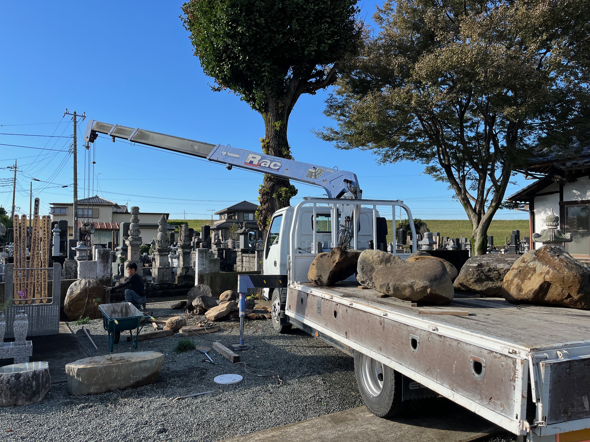 お客様のお庭の大切な石を、ご実家のお寺に運搬する日でした。。。