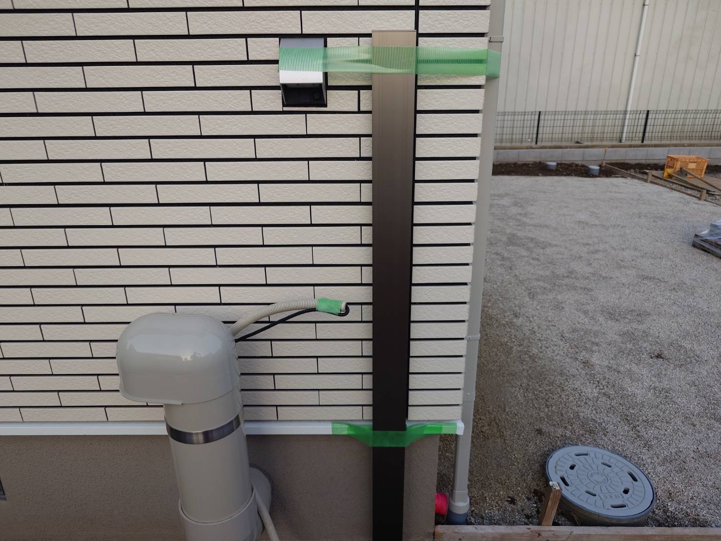 外構用の照明のトランス設置するための柱を外コンセントの隣に立てます。この柱にトランスをビス止めします。