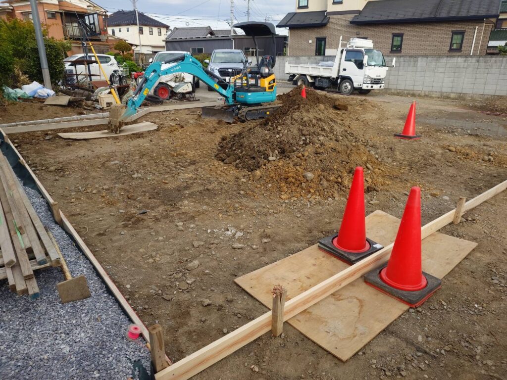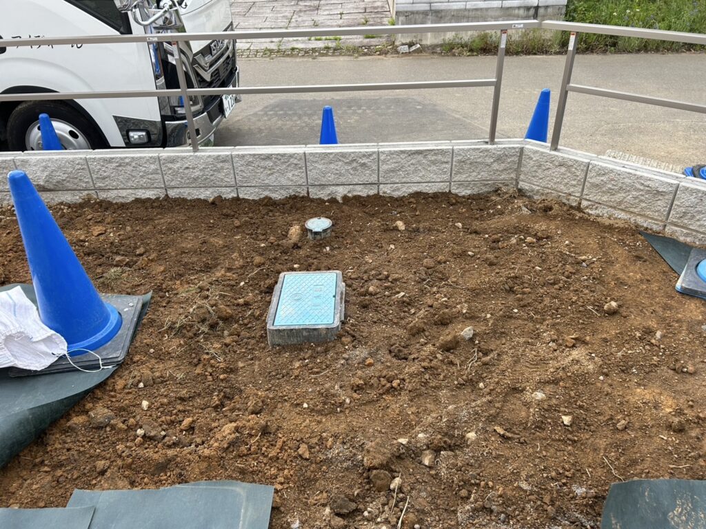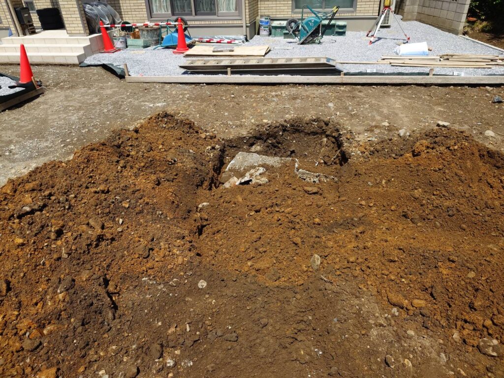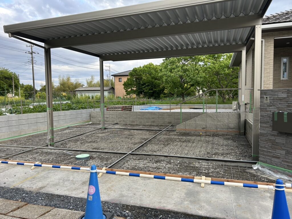 カーポート屋根の下駐車場の土間コンクリート打設準備です。