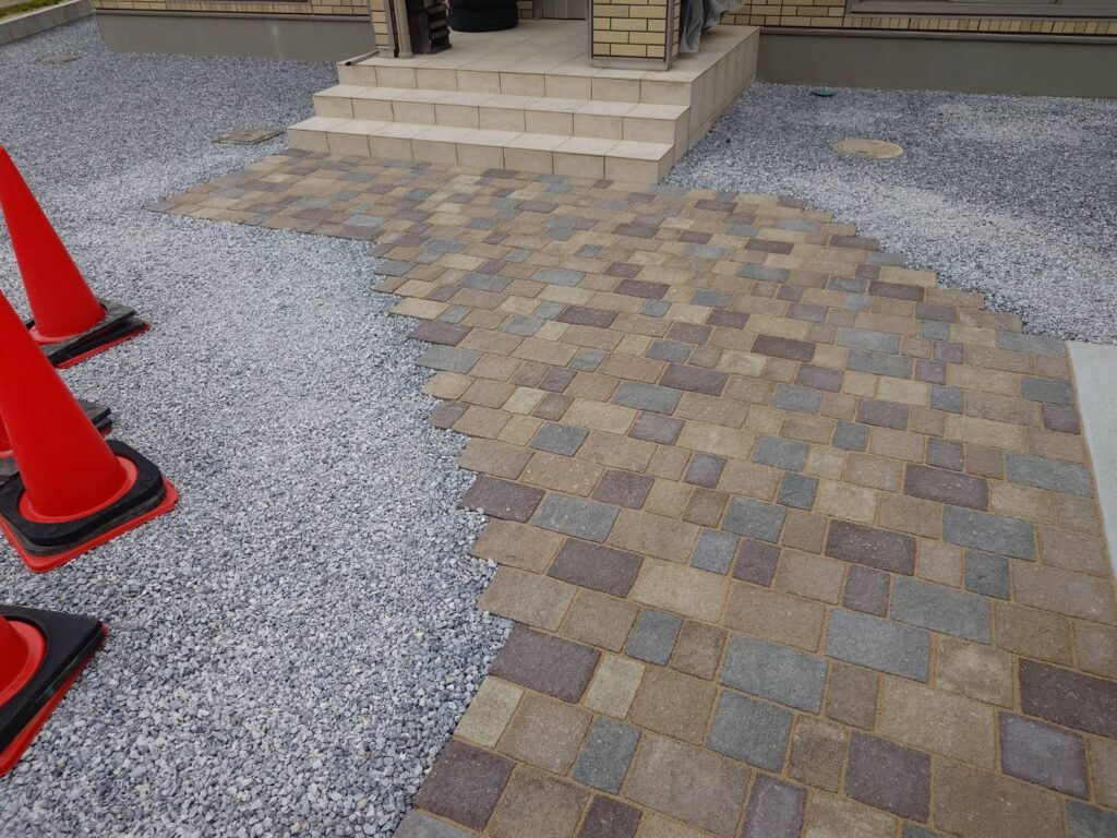 ↓インターロッキングのアプローチ、当初の計画より少しだけ拡張しました。