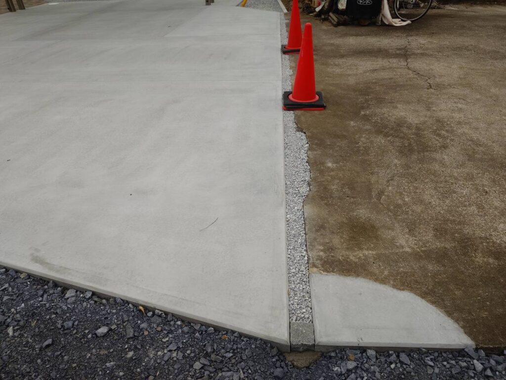↓右側の土間は以前からあるものです。旧、新、の土間の間に砂利です😉