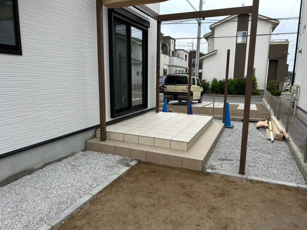 リガーデンでタイルテラスと同時に目隠しフェンスも設置します。