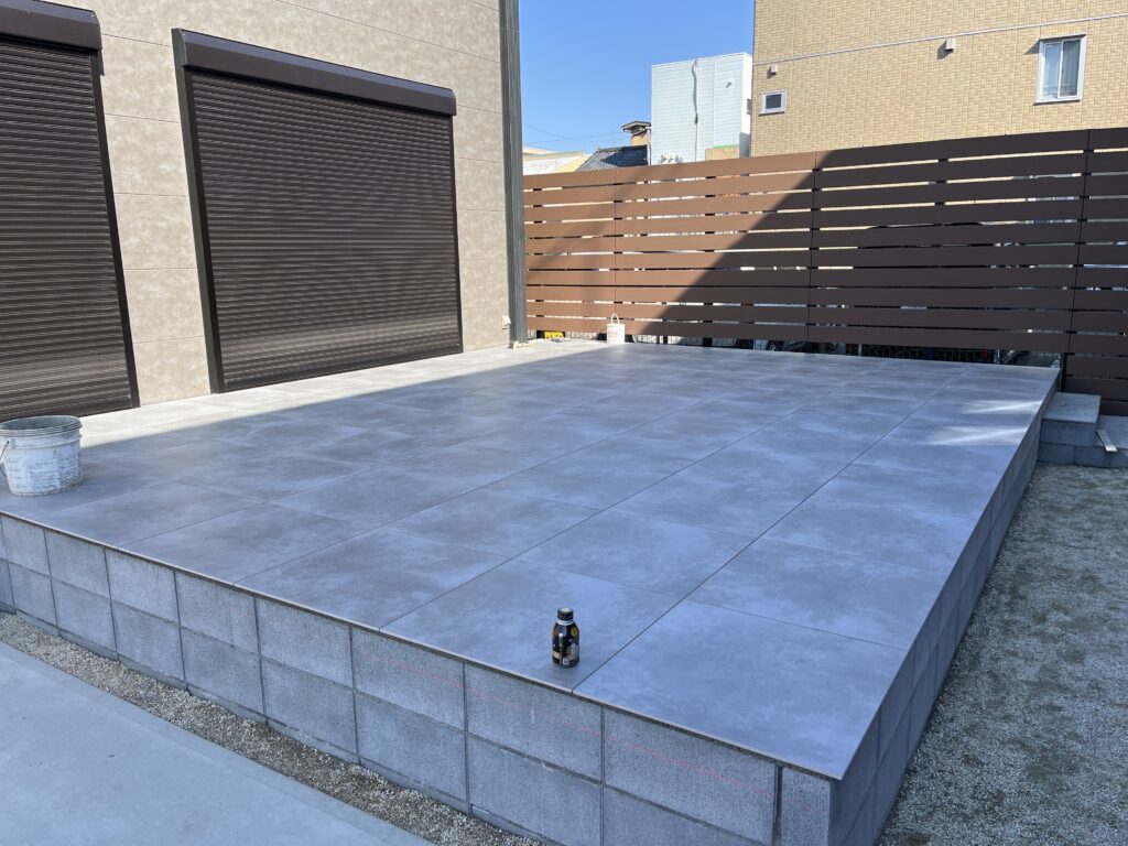 大きなタイルテラスに大きなタイル