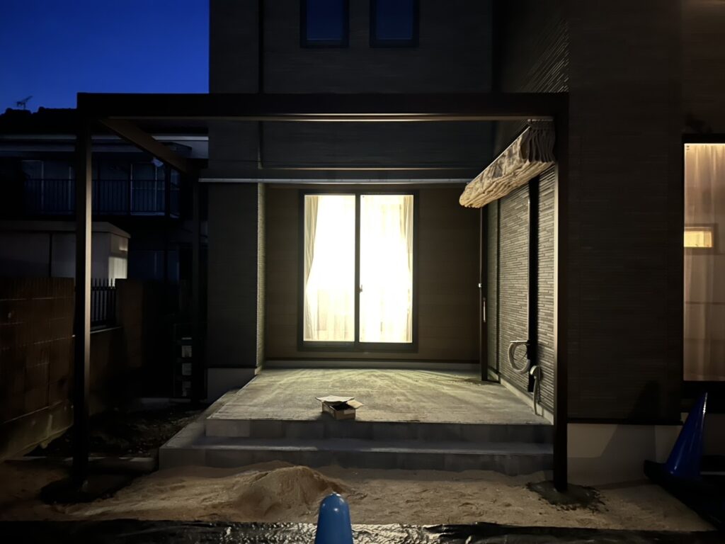 タイルテラスにフレームポーチ設置!シェードが付きました😊