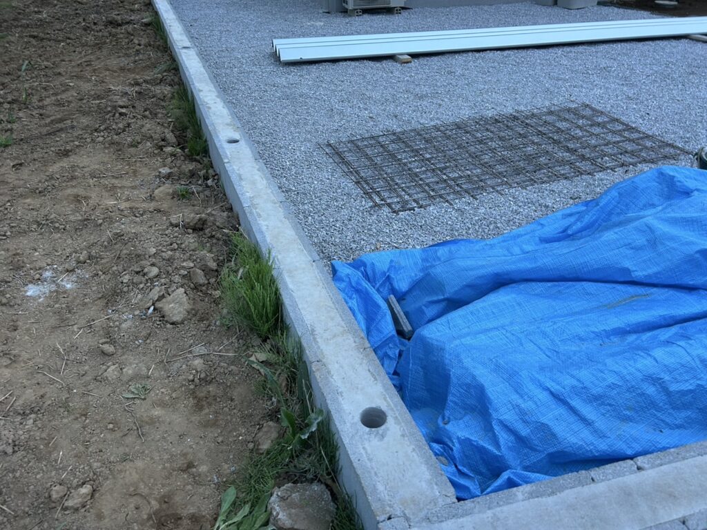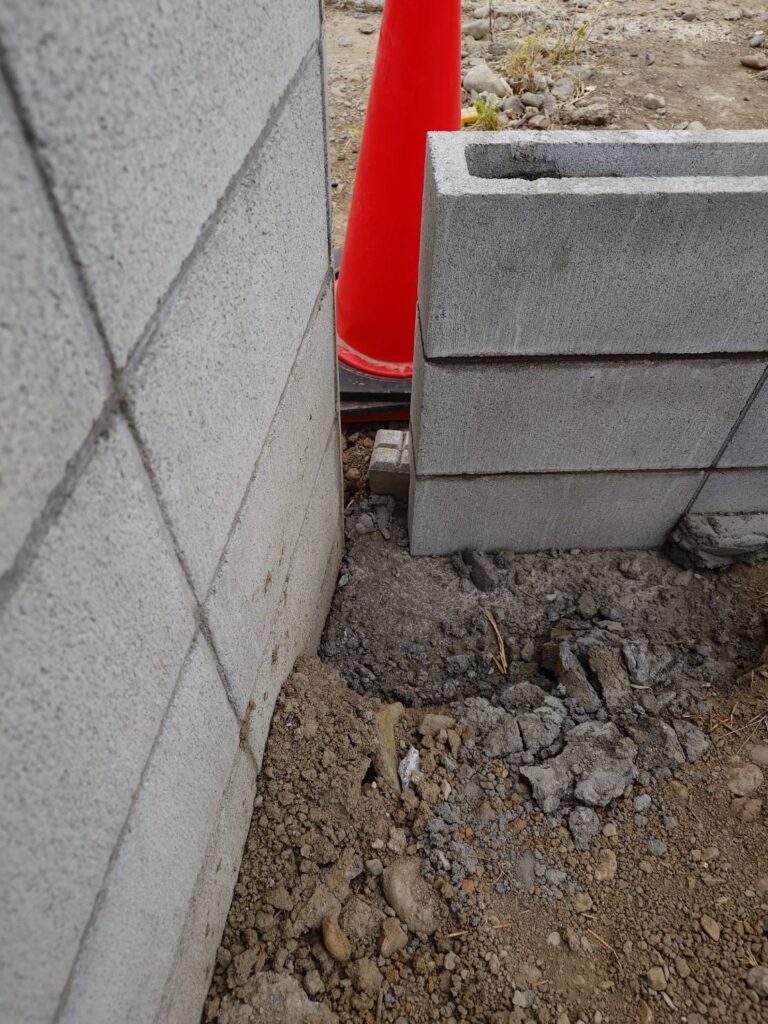 ハウスメーカーさんが先に作ってくれていたブロックにフェンスをつける場合は柱の位置に穴を作ります。(🟰コア抜き)↓