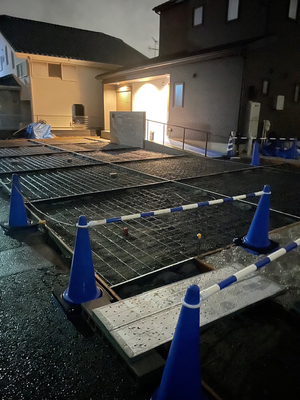 土間コンクリート打設準備!職人さん、遅くまでありがとうございます_(._.)_明日打設です!