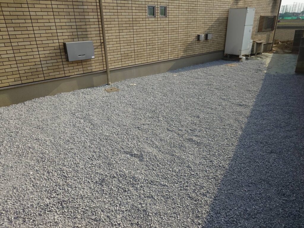 バックヤード↓はばっちり雑草対策終わり、砂利で覆われました👌