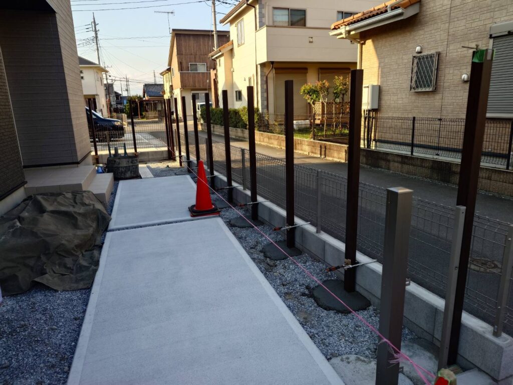 住宅街なのでお散歩の方など人通りが気になる道路なので目隠しフェンスを設置いたします。