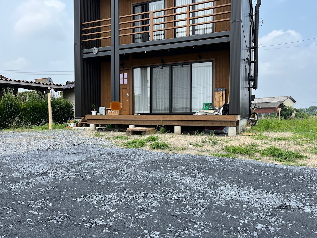 にや庭では「簡易砕石舗装」「仮説インターホンとポスト」を無料で施工して、着工までお待ち頂いております_(._.)_