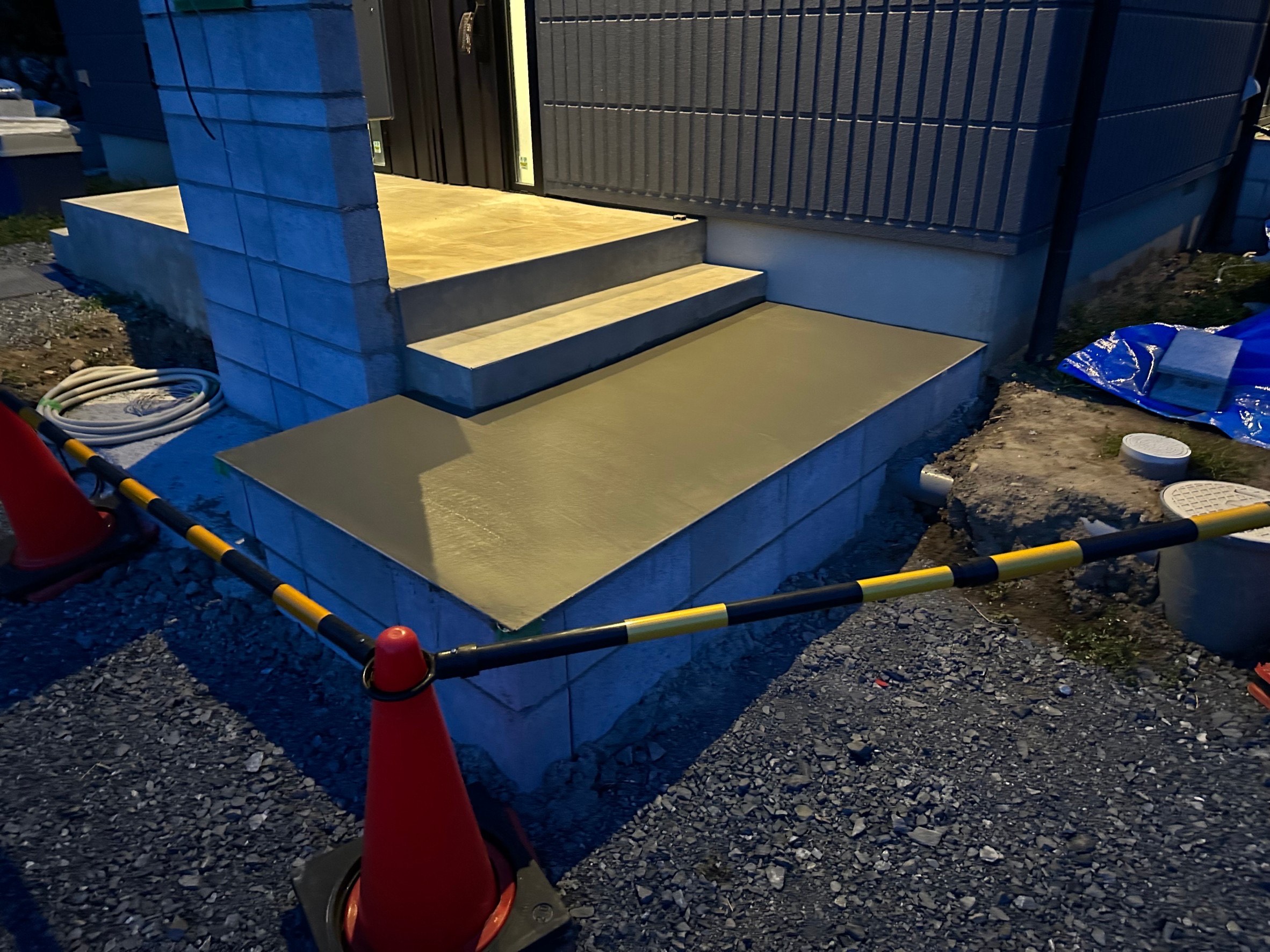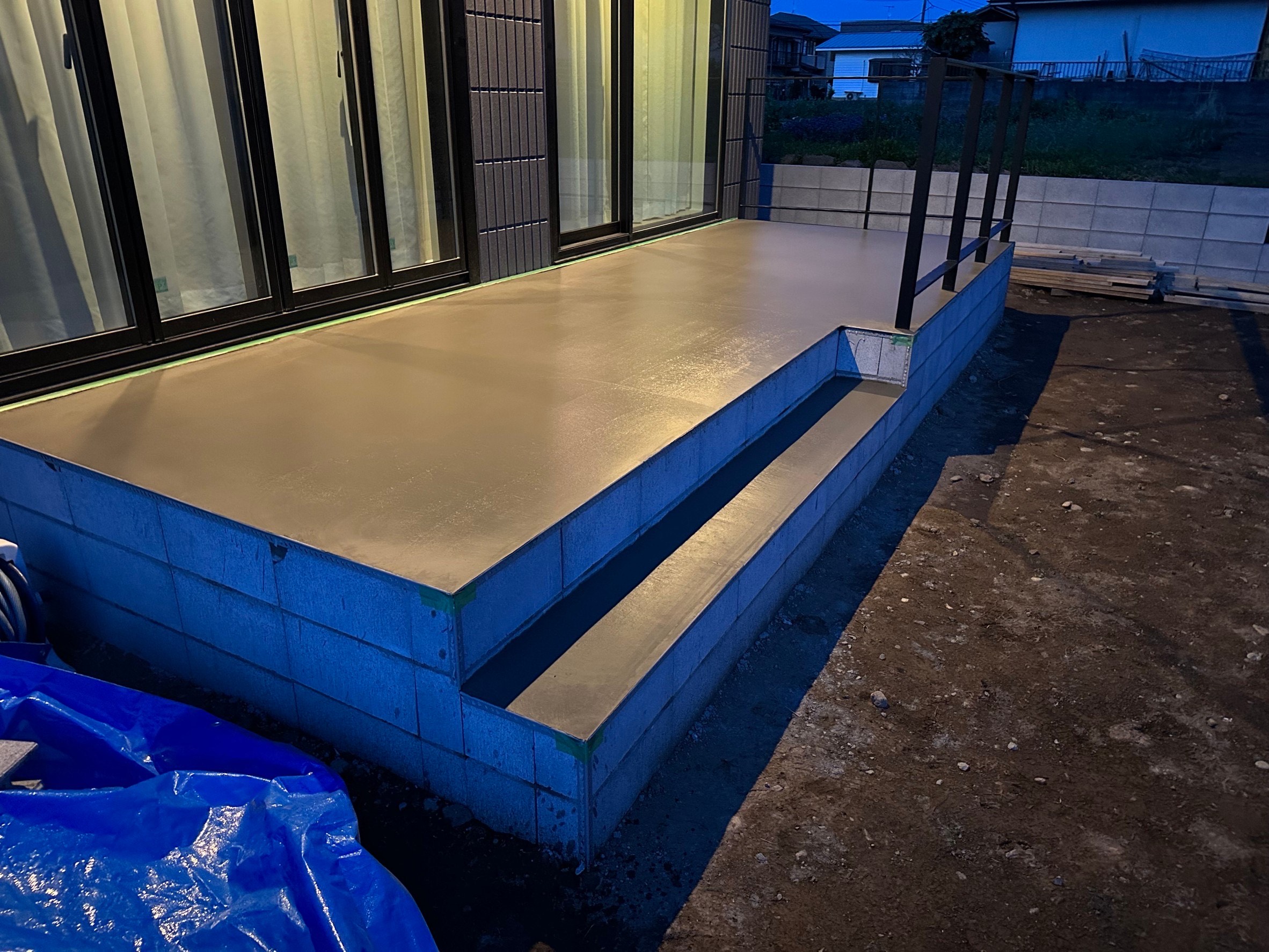 コンクリート打設いたしました。側面をモルタルで仕上げてモダンなテラスになります^^