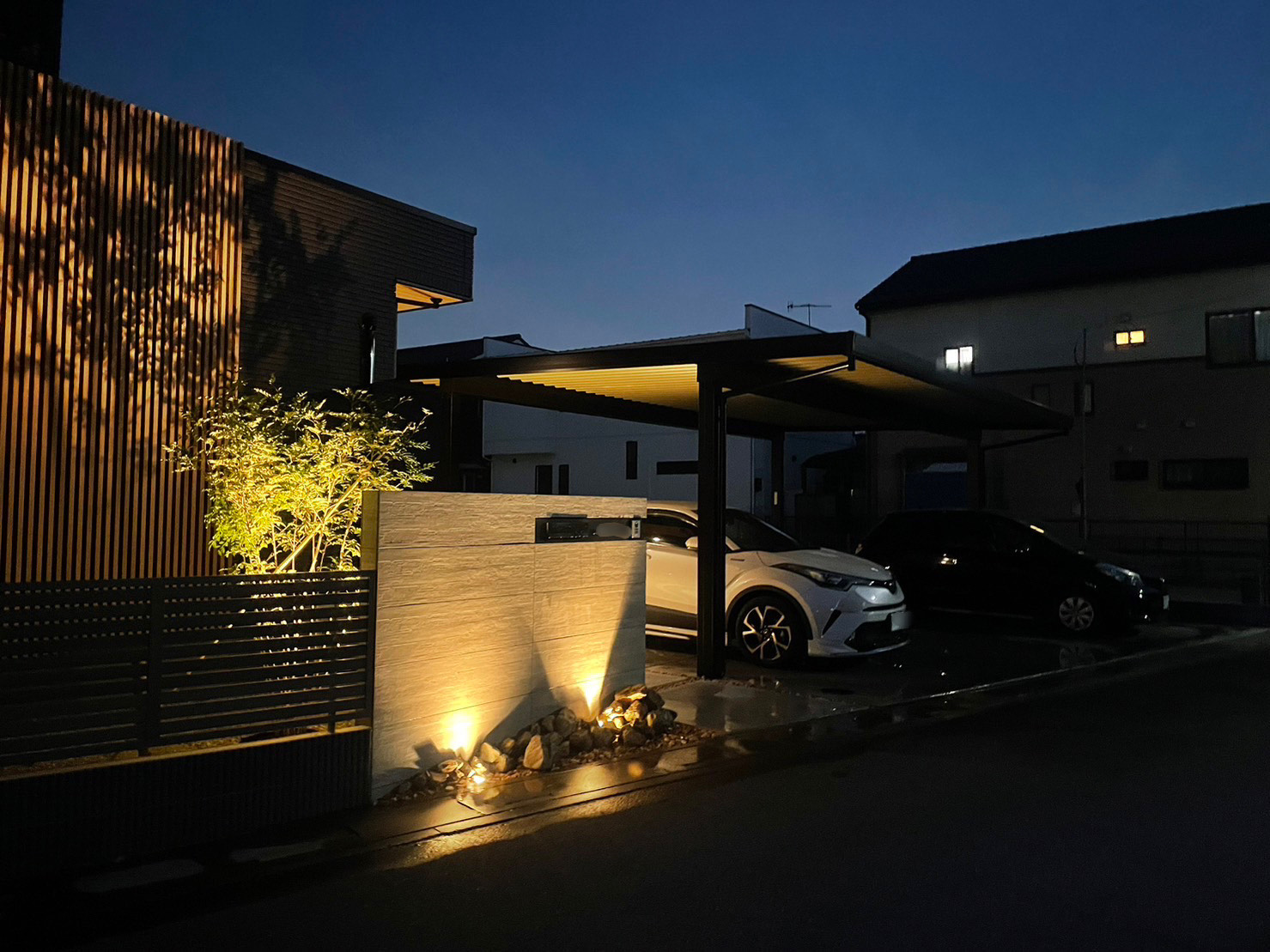 シマトネリコの植栽スポットライトは【タカショー:ガーデンアップライト ルーメック M 広角】を使用しています。