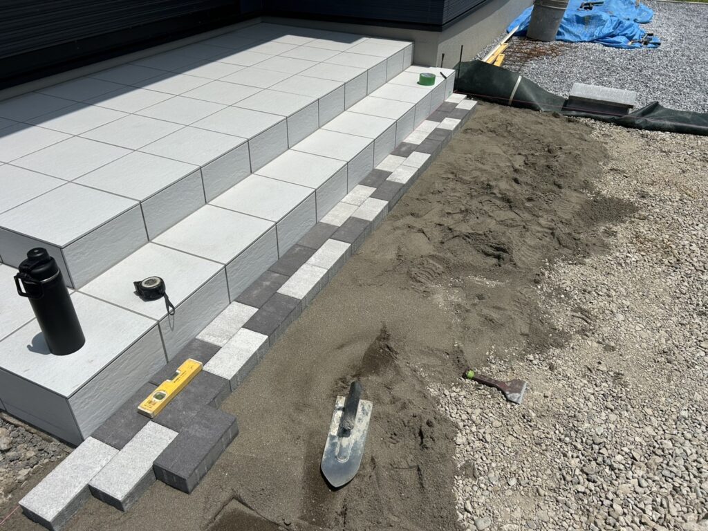 モノトーンのインターロッキングでくつろぎスペース作成します。