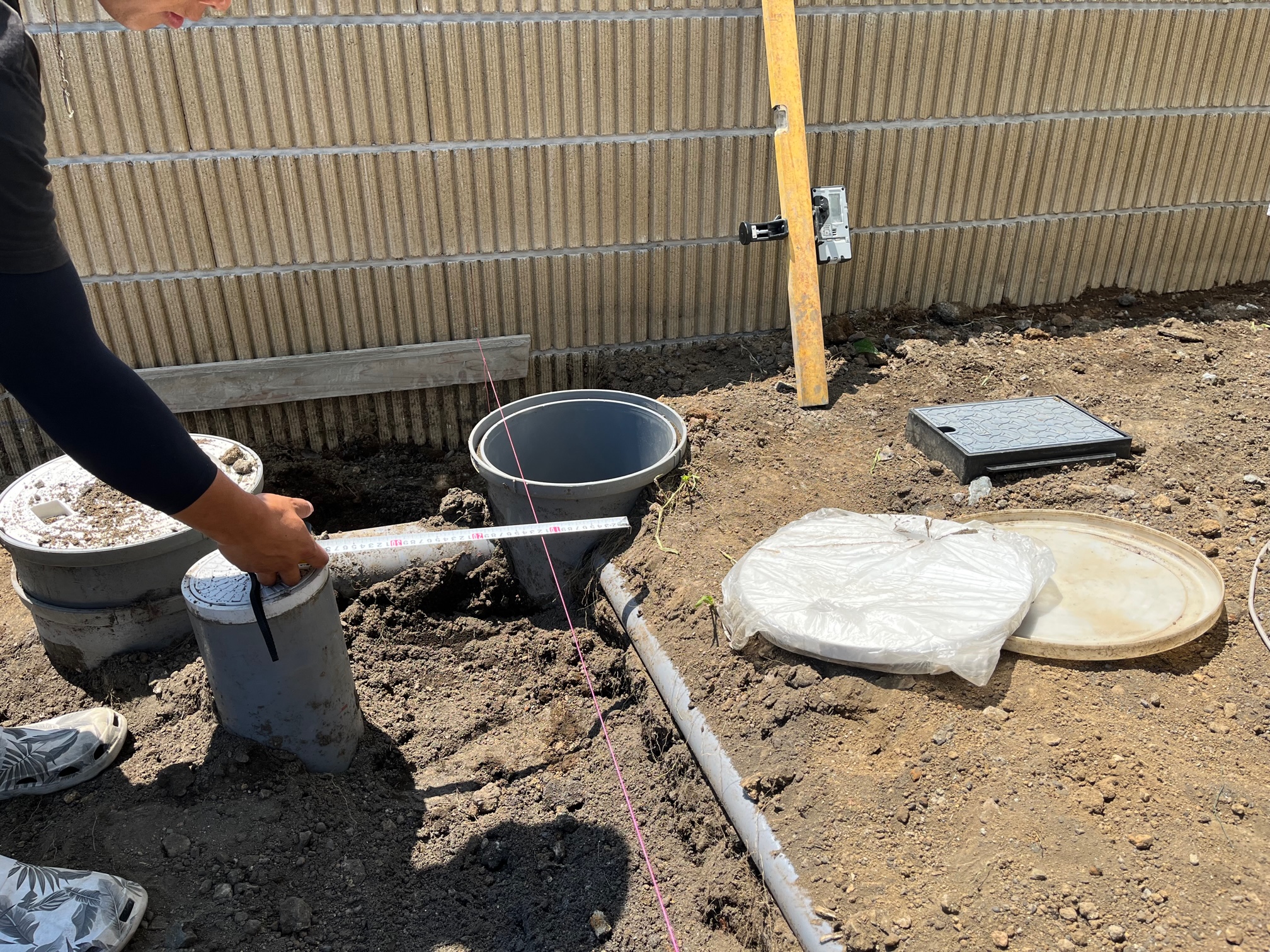 現調時に想定していた桝移設。土留め化粧ブロックとぶつかってしまうのだ💦