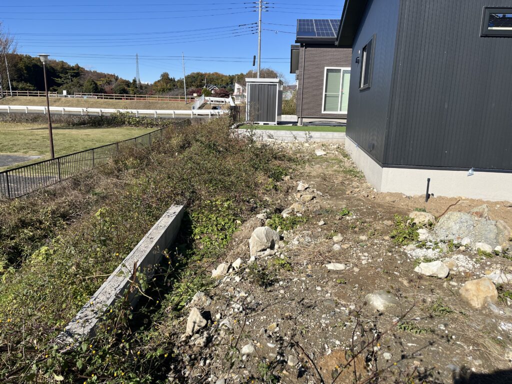 手前は春になったらお施主自身で天然芝を張る予定です👍
