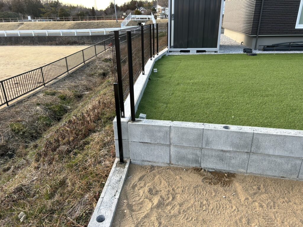お隣り様との境界もメッシュフェンス設置します🐕