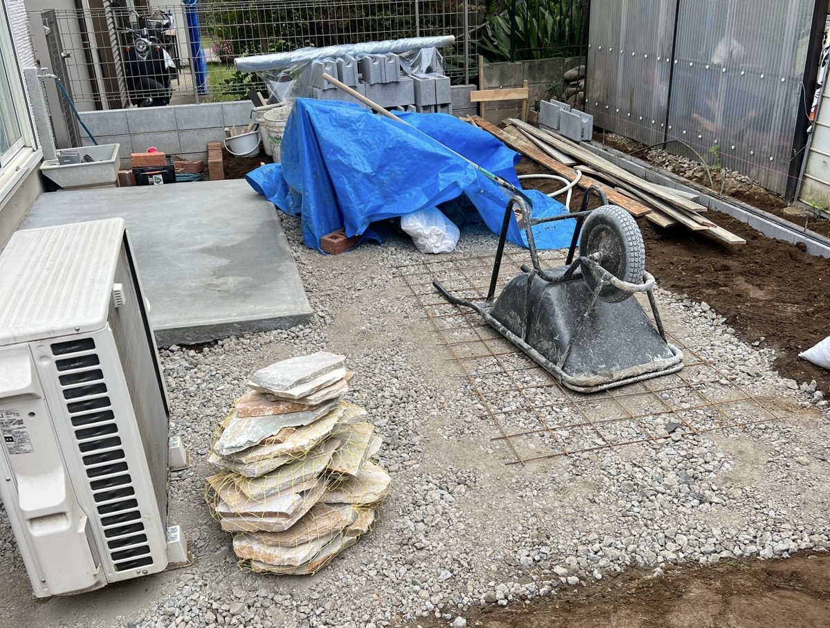 レンガ花壇とコンクリート製枕木で菜園スペースもつくるわ👷