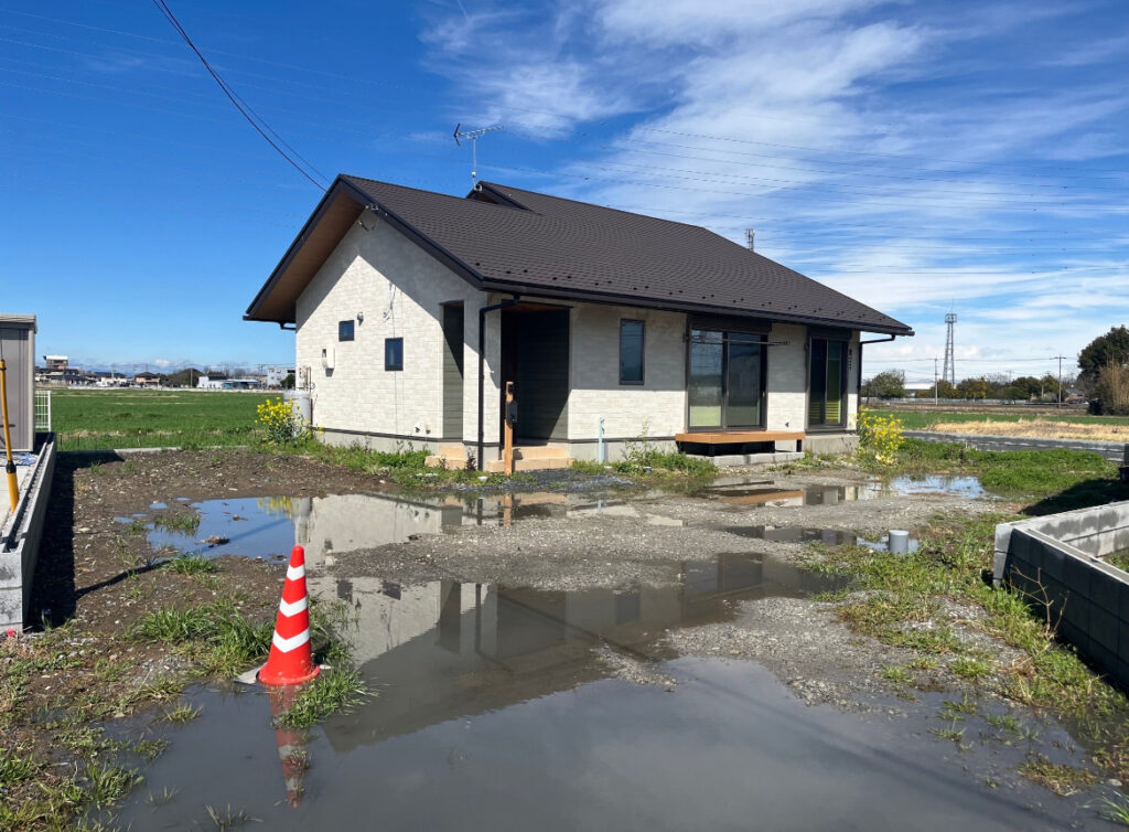ちょっとの雨で大変な水溜まりになってしまうお庭を水捌けバッチリのお庭にしております👷