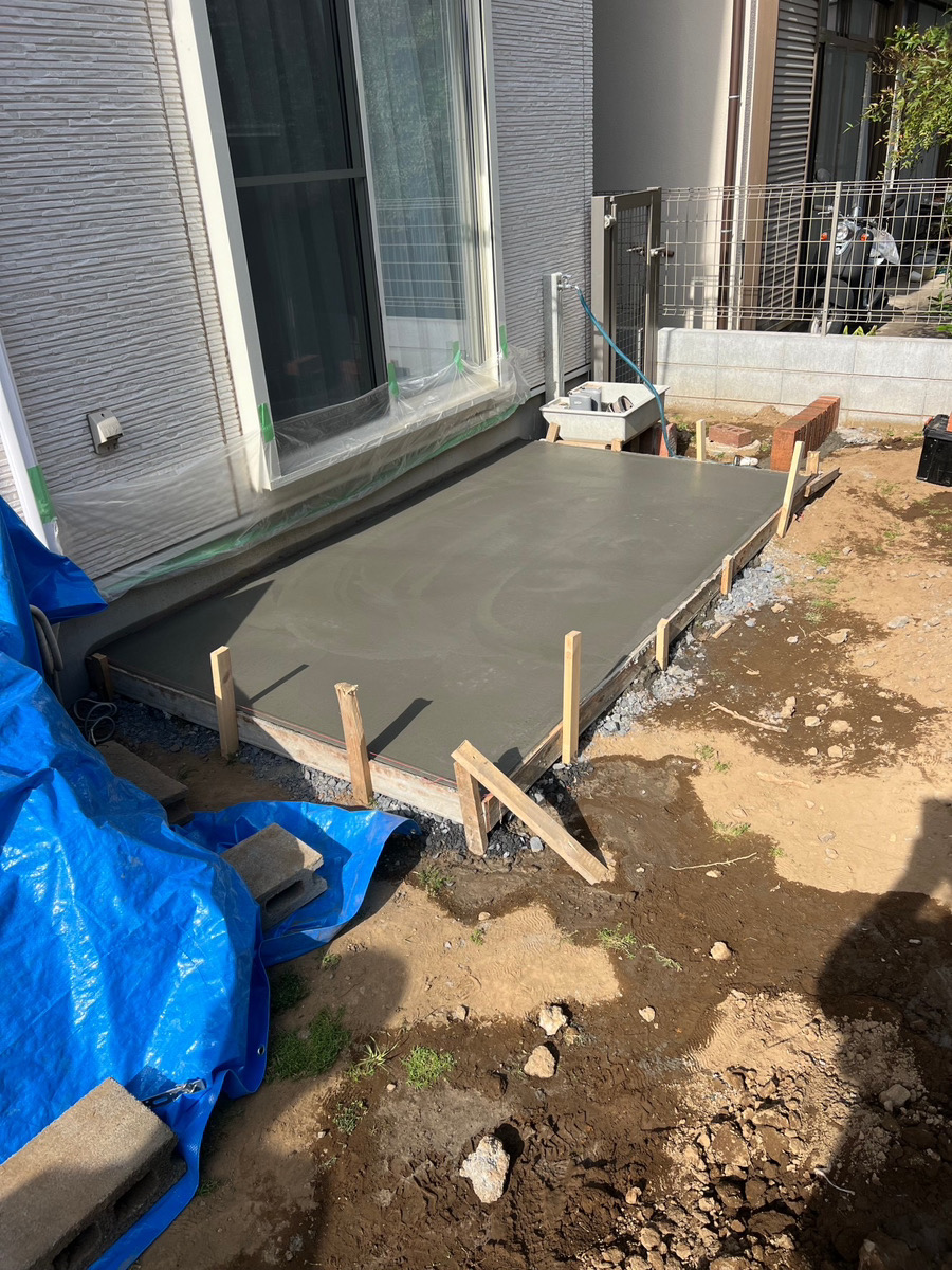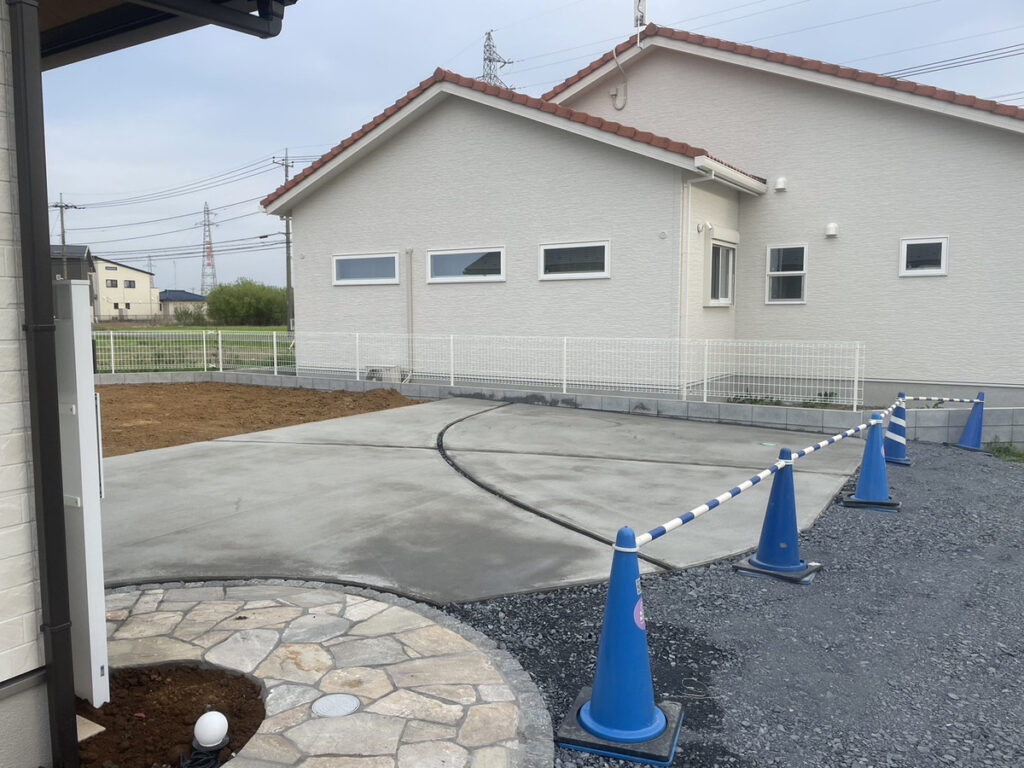 雑草対策や掃除等のメンテナンスを考えるとコンクリート一択です。