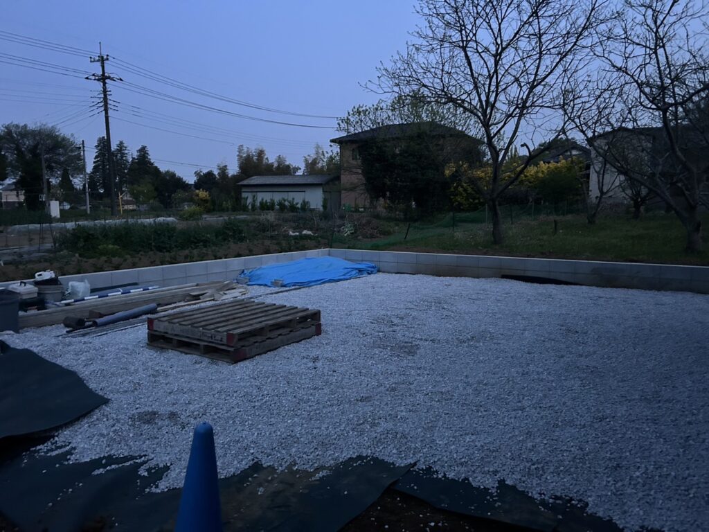 その上に防草シートと白ビリ(砂利)です
