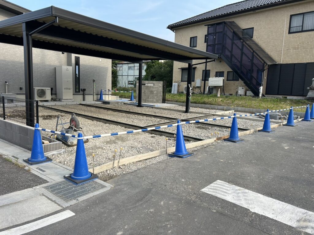 カーポートの下はコンクリート土間を打設予定です。目地は伸縮目地で、凸凹のなくキャリーバックやベビーカーなどが使いやすい仕様に仕上げます。↓こちらはお家横の敷地内スペース