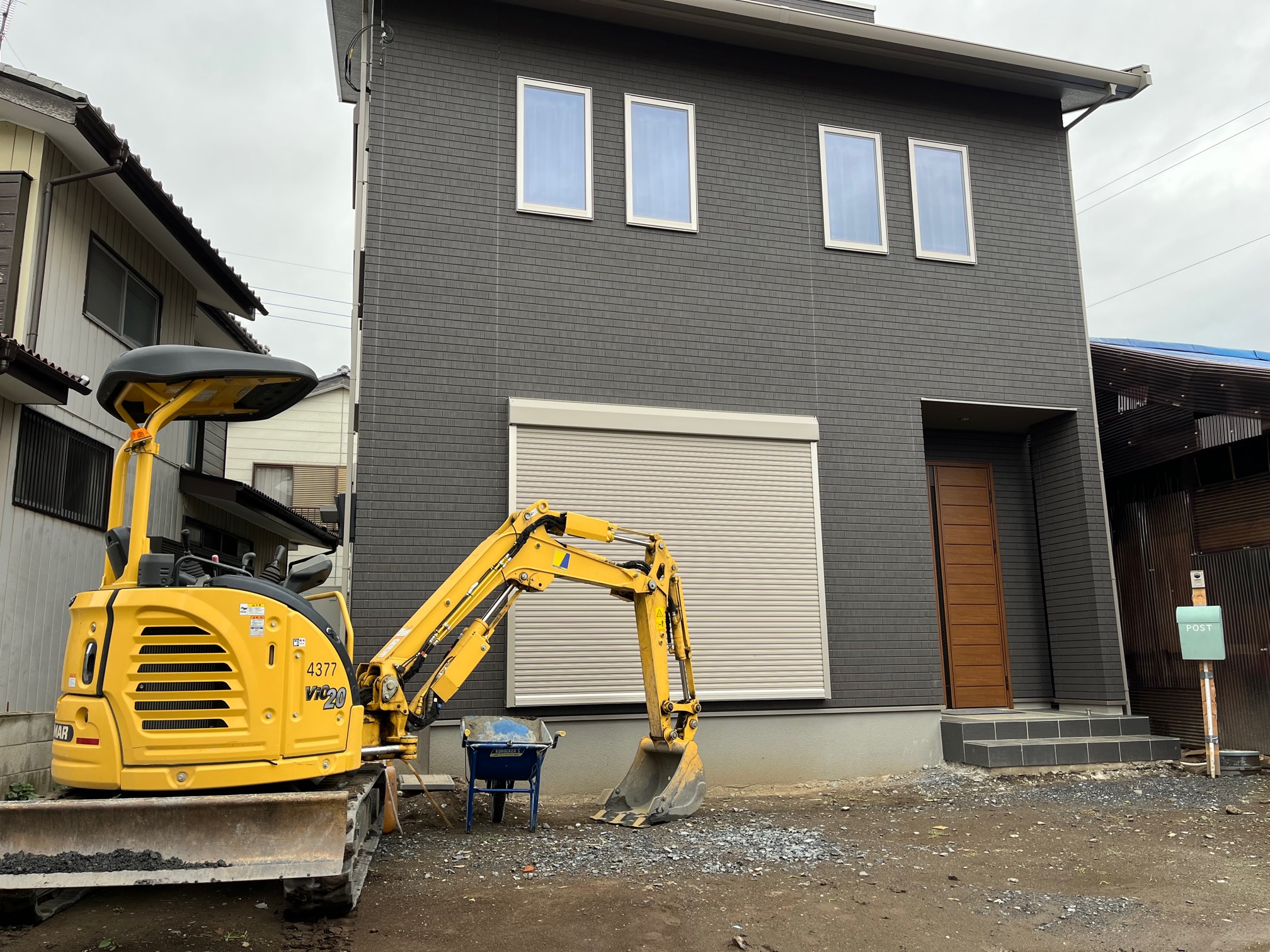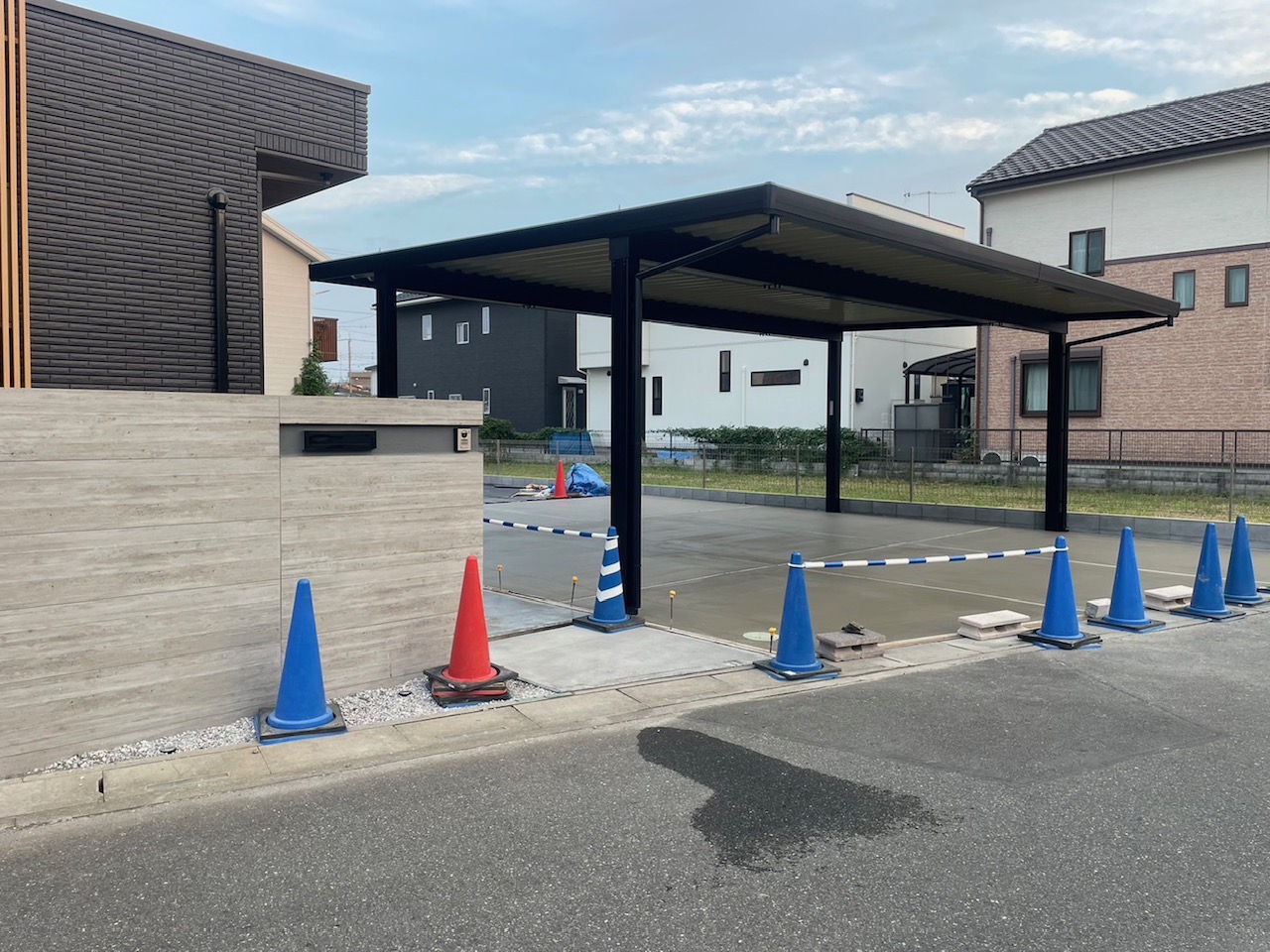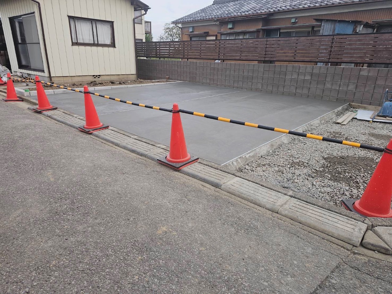 土間コンクリート打設後の型枠をバラシました。本日より駐車場利用可能でございます_(._.)_