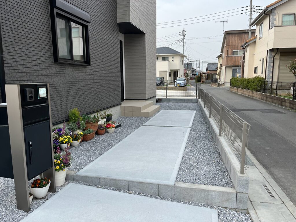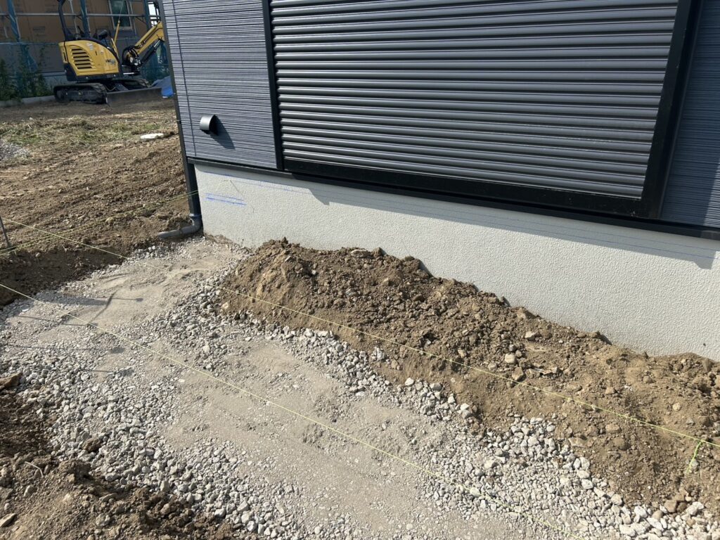 本日着工です。お家のGLと周りのお家と道路との高さ確認です。お庭や駐車場に水がたまらないはもちろんなのできちんと高低差確認を図面だけではなく現場で確認します。新築外構工事では大切☝️