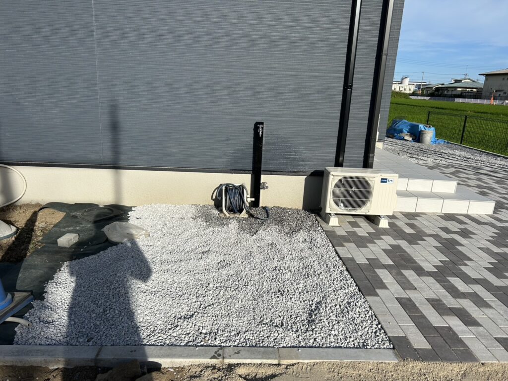 門柱の向かって左横には角柱ブラックがたつ予定です。角柱で門柱の縦横比率を整えます。
