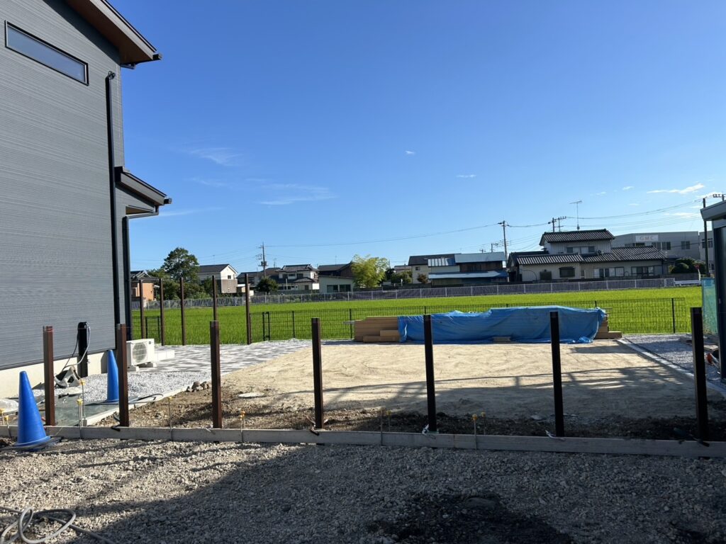 境界の目隠しフェンスの主目的は「お庭で遊ぶときにボールなどが駐車場にはいかない」ですので高さはあまり必要ではありません。