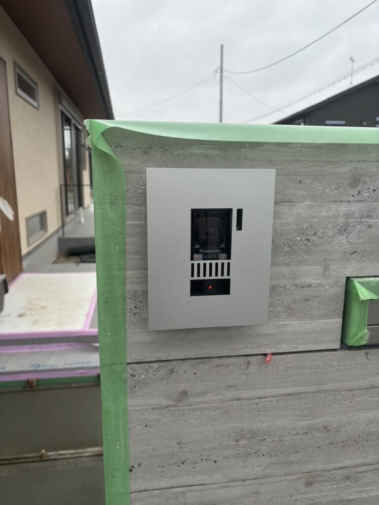 タカショーセラウォール RC杉板を貼った門柱にノイズになるインターホンにカバーを設置です。
