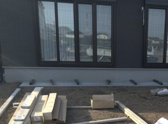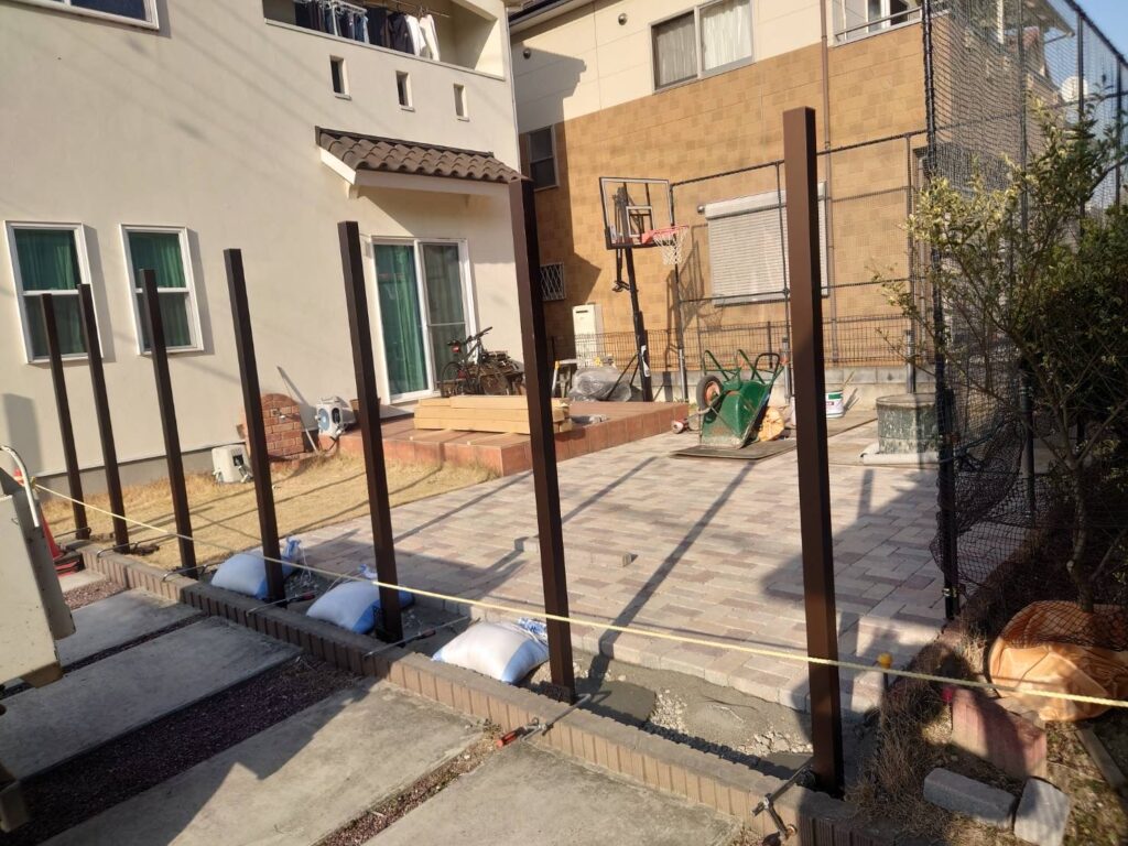 門柱の足元に、は地中埋め込みライトが門柱を演出します^^