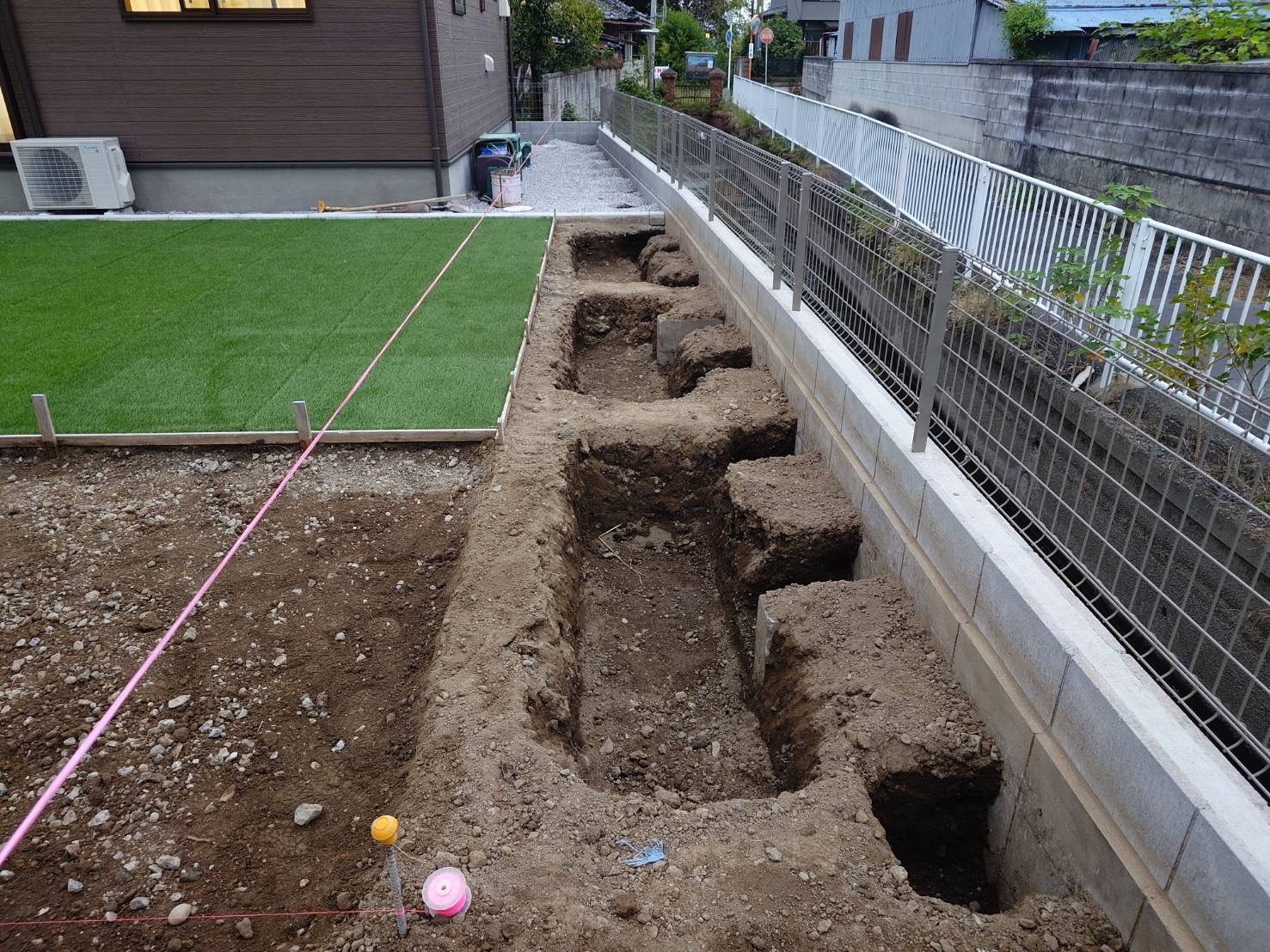採掘調査っぽいですが、菜園スペースの土入れ替え用の掘削とフェンスの柱用の掘削です^^