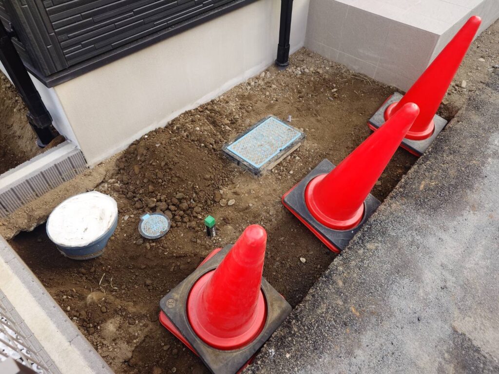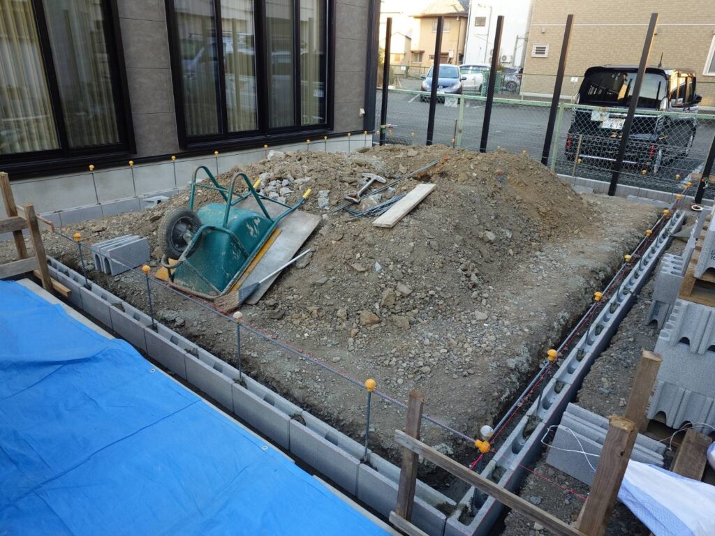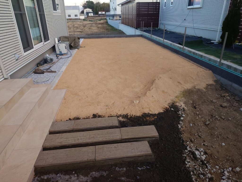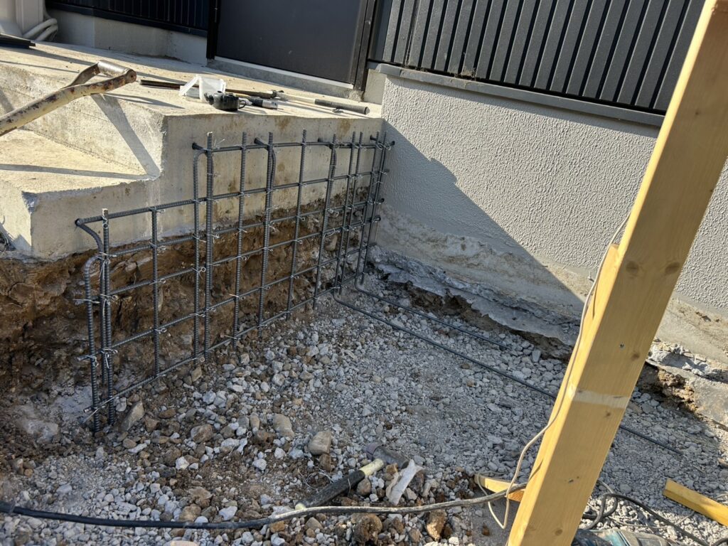 隣の穴はタイルデッキの下地用の準備です 大きなタイルデッキを作成します。 玄関ポーチに階段を設置します < 熊谷市 外構工事 > カーポート設置準備中 カーポートの柱用の穴です 木枠は駐車場のコンクリート打設 […]