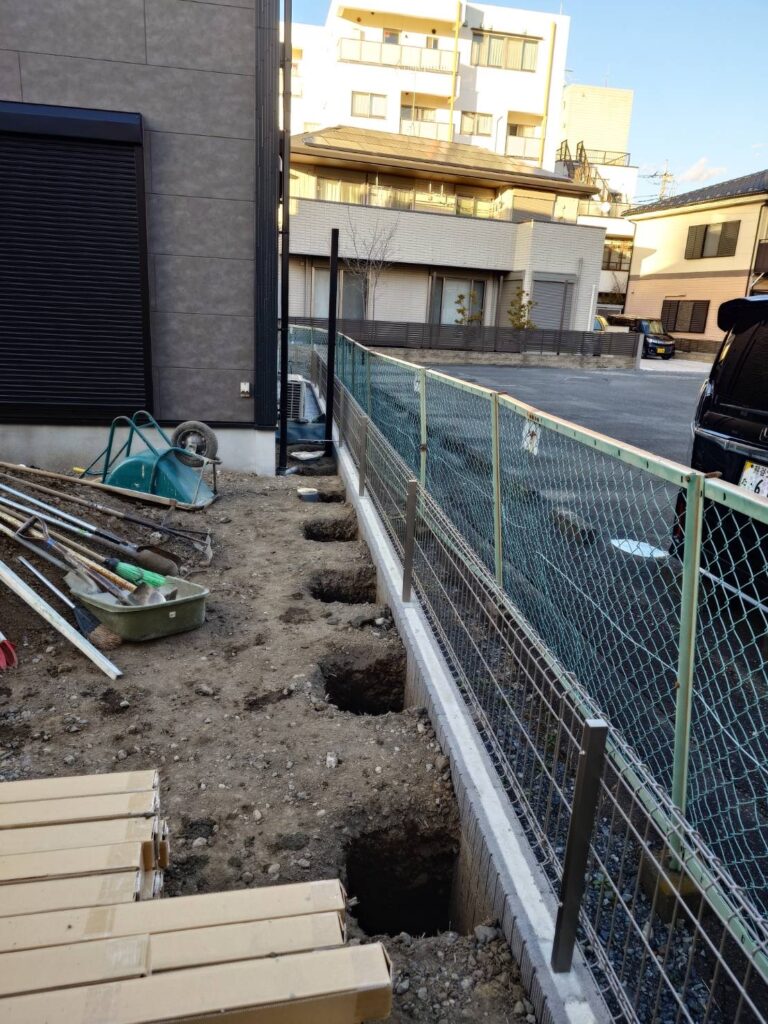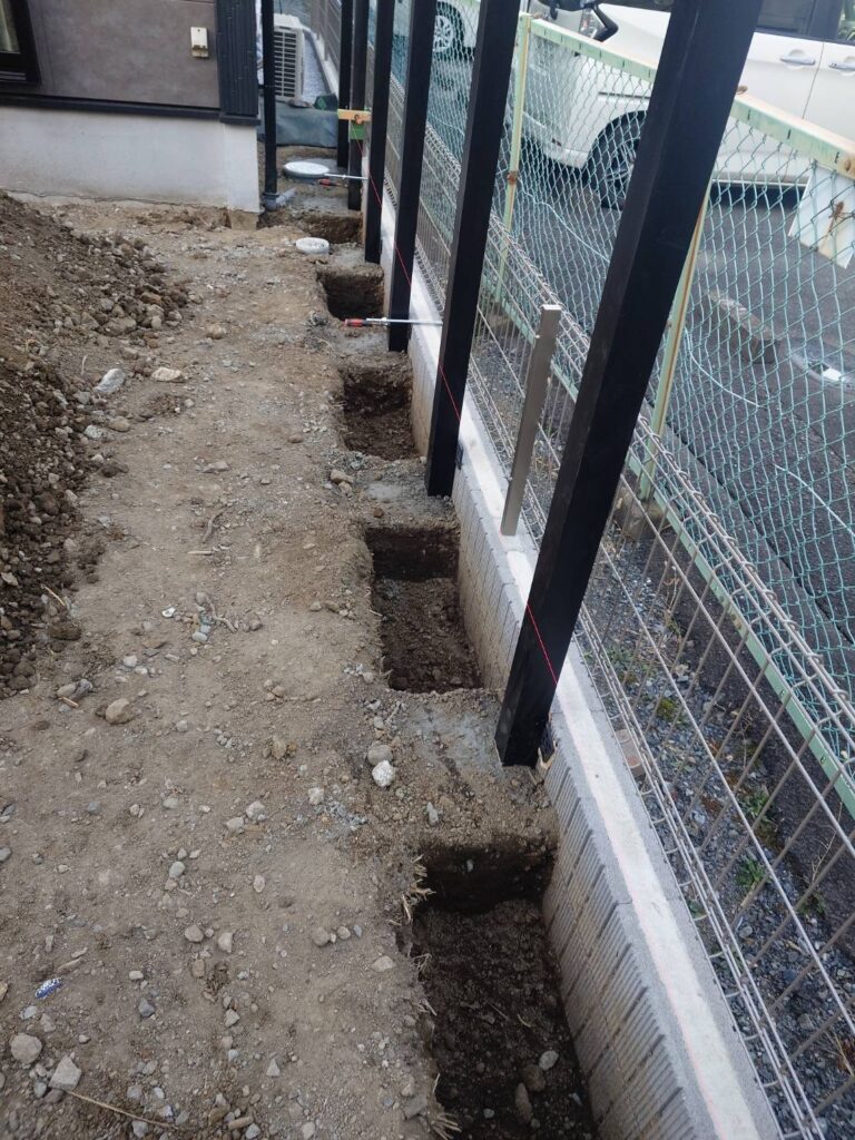 目隠しフェンス柱立ちました