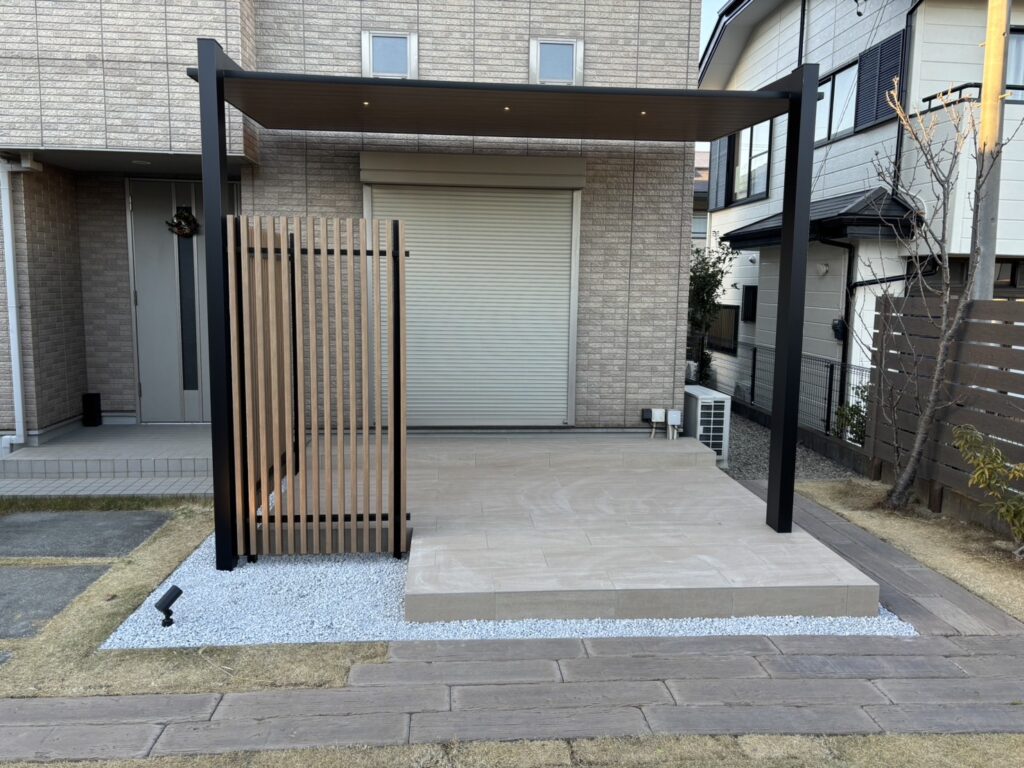 フレームポーチと目隠しフェンス完成です