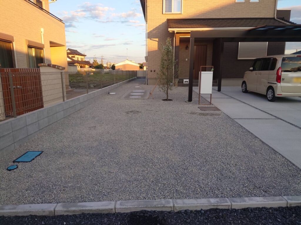 2023年10月17日 工事完了(^^)/ お庭完成です! (表札とインターホン、植栽用スポットライトはこれからです!(^^)!) フェンスとブロックの隙間にはフェンス隙間塞ぎを設置し、雑草とお子様の砂利投げを防いでいます! 下地は【山砂】、お客様のご要望で芝は【 […] 続きを読む