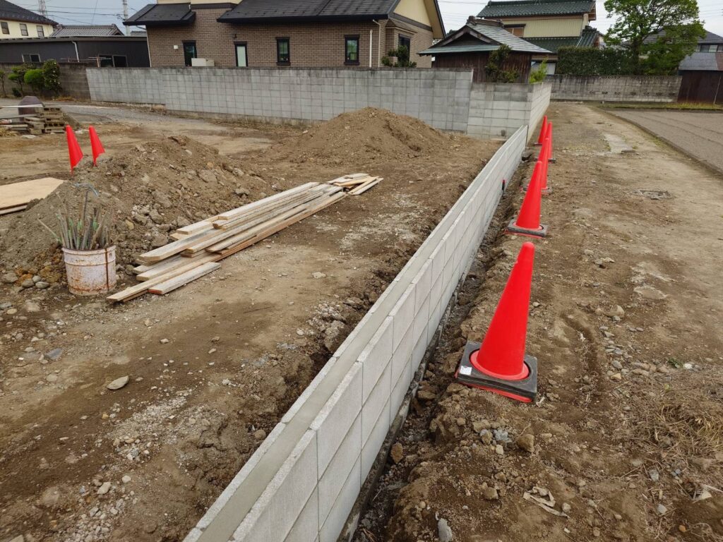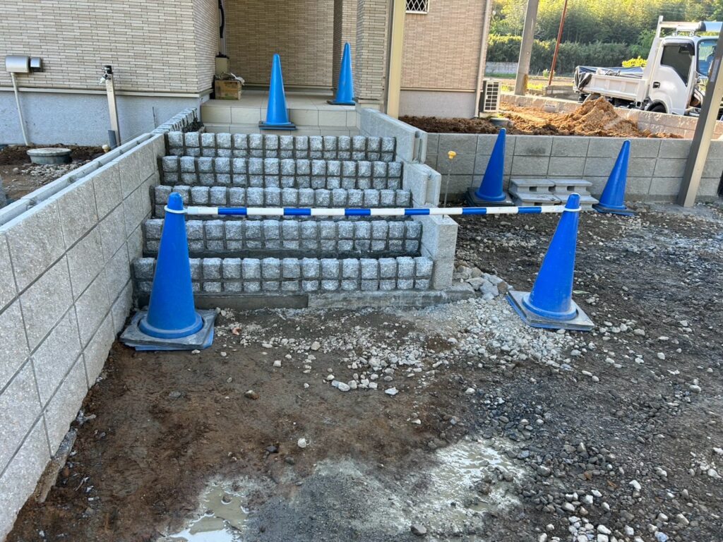 1段のタイルステップにタイルが貼りました。 タイル目地もばっちり揃ってます。 門柱にインターホン、ポストも付きました。 門柱は東洋工業:ラッジプレート(色・クロウ) 雨水枡の高さ調節中です↑ <熊谷市 外構工事&g […]