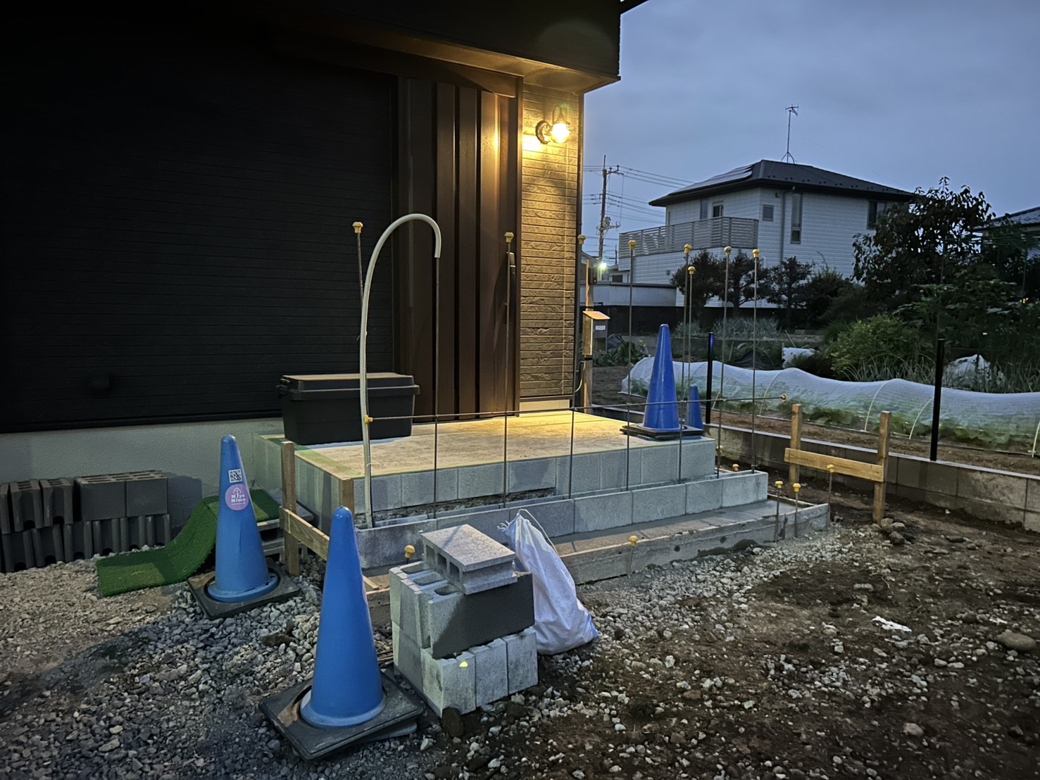 コンクリート製の枕木で菜園スペースも創ります^^
