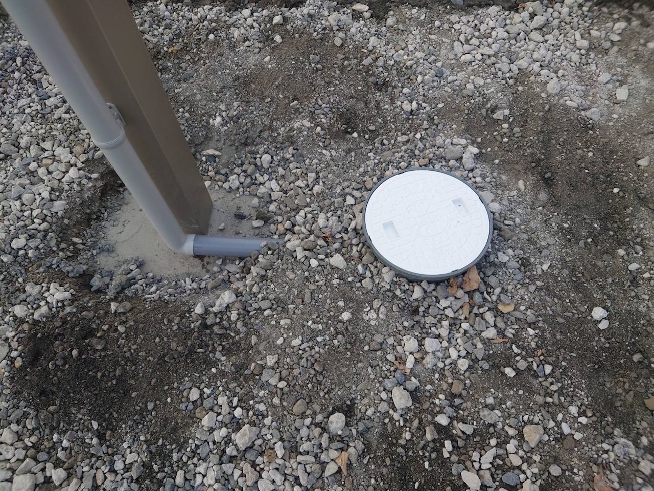 雨樋の先に雨水桝を設置して雨水を浸透させます。