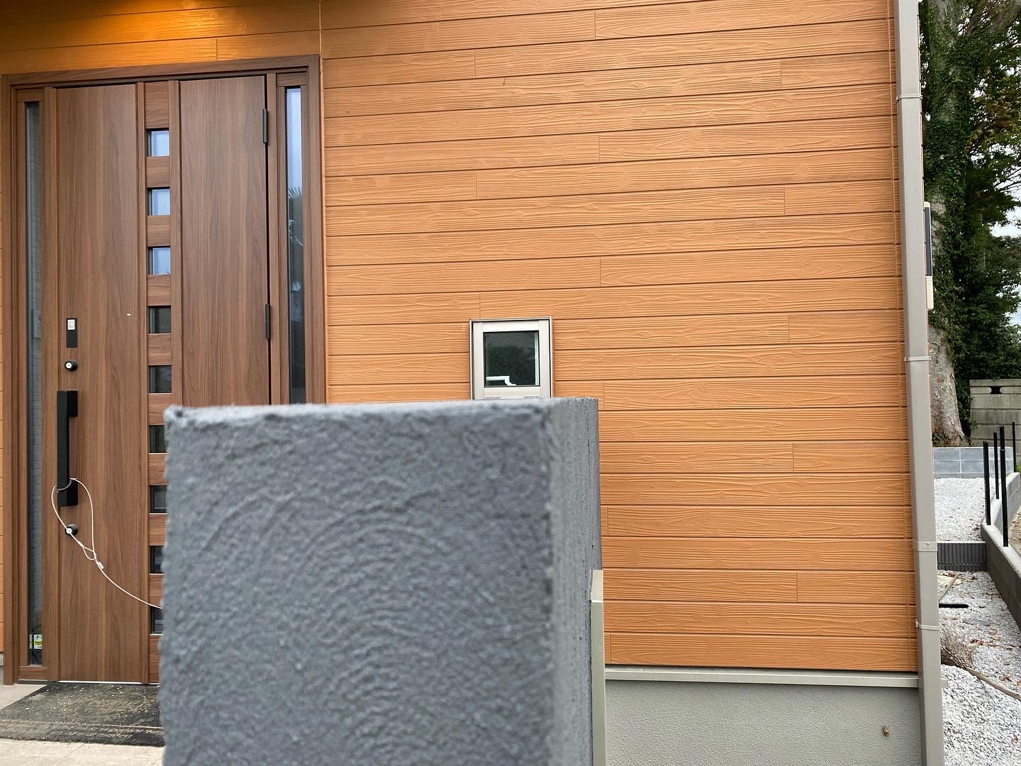足元は雨の跳ね返りで汚れやすいです。タイルや天然石でガードすると良いですわ^^