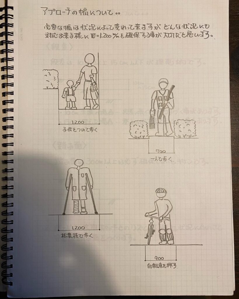 2023年03月07日 アプローチの幅員 基準があります^^ デザインをする時は、幅員1200㎜を確保しています。 将来スロープや手摺りを設置してユニバーサルデザインに対応可能な寸法です^^ 。。。 ************************** 「にや庭 […] 続きを読む